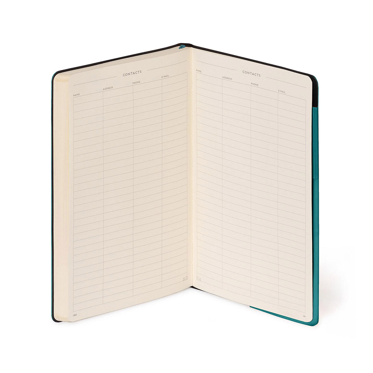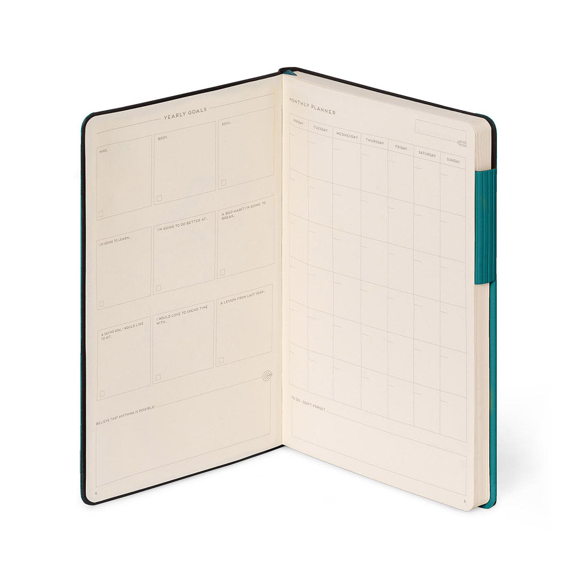 Het notitieboek heeft een inhoudsopgave, paginanummering, een wereldkaart, een maandplanner, pagina's voor contactgegevens en wachtwoorden, én ruimte om je doelen in op te schrijven. De My Notebook heeft een elastieksluiting, een bladwijzer en achterin een handig opbergvakje.