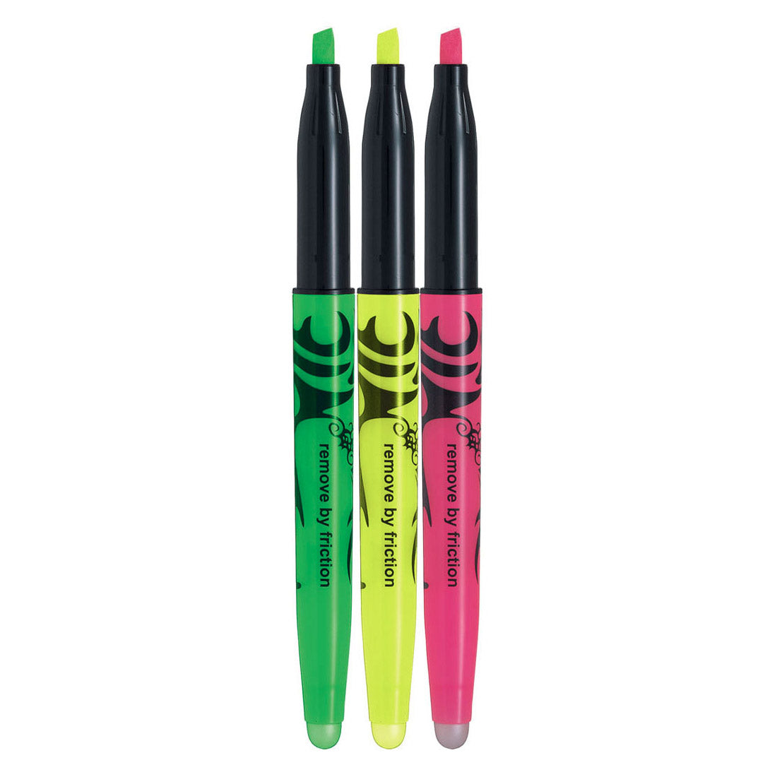 Maak je notities, planners en creatieve projecten flexibel met de Pilot FriXion Ball 3 Markerset. Deze set bevat drie markerstiften in complementaire kleuren die je eenvoudig kunt wissen dankzij de innovatieve thermosensibele inkt. Schrijf je per ongeluk iets fout? Wrijf erover met de gum aan de achterkant en het verdwijnt als sneeuw voor de zonn, zonder residu of schade aan het papier.